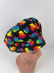 Rainbow Hearts Bouffant Scrub Hat