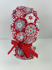 Christmas Snowflakes on Red Ponytail Hat